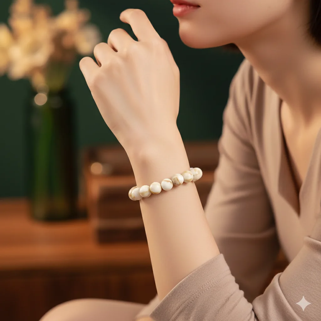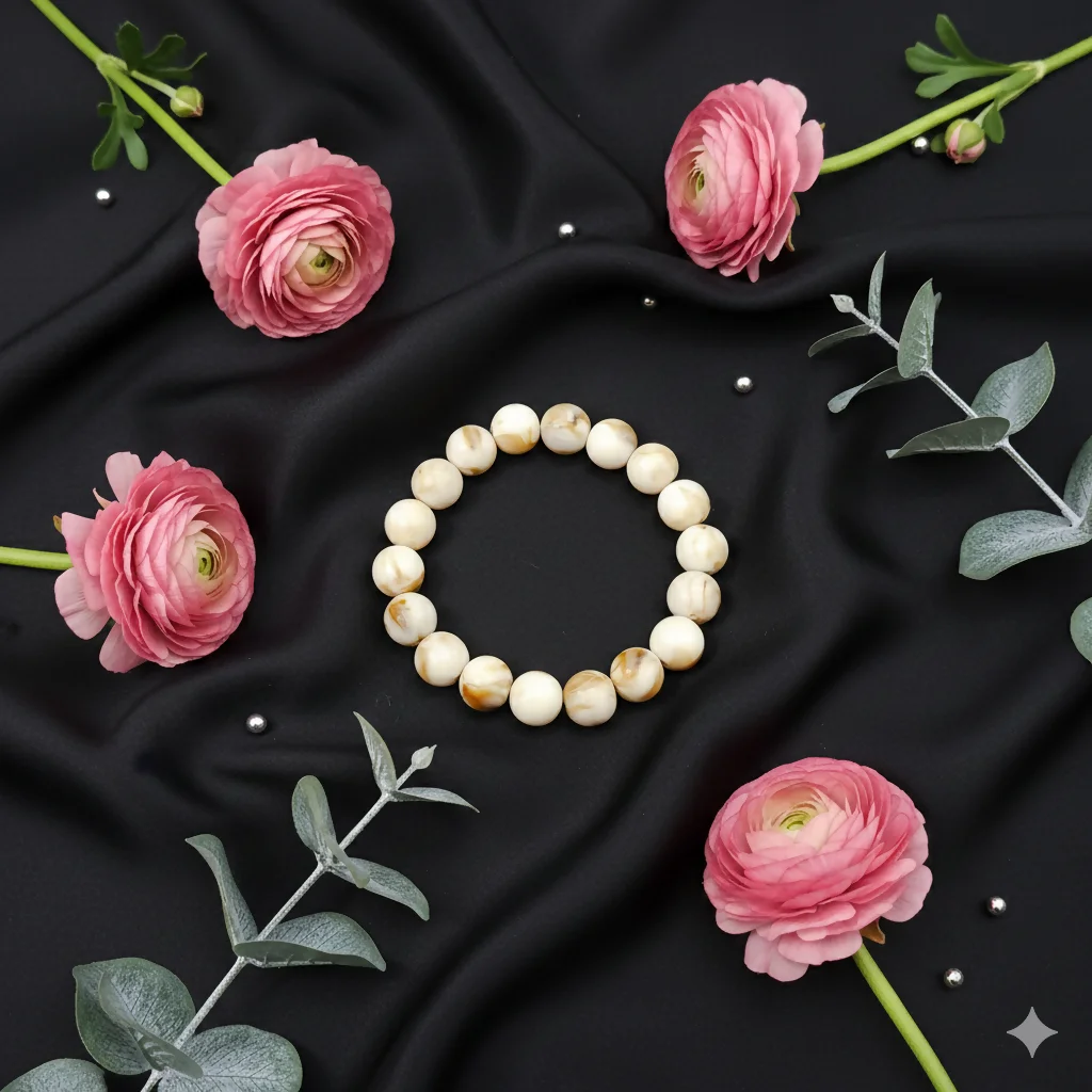 Be the first to review White & Beige Marble Finish Beaded Elastic Bracelet!