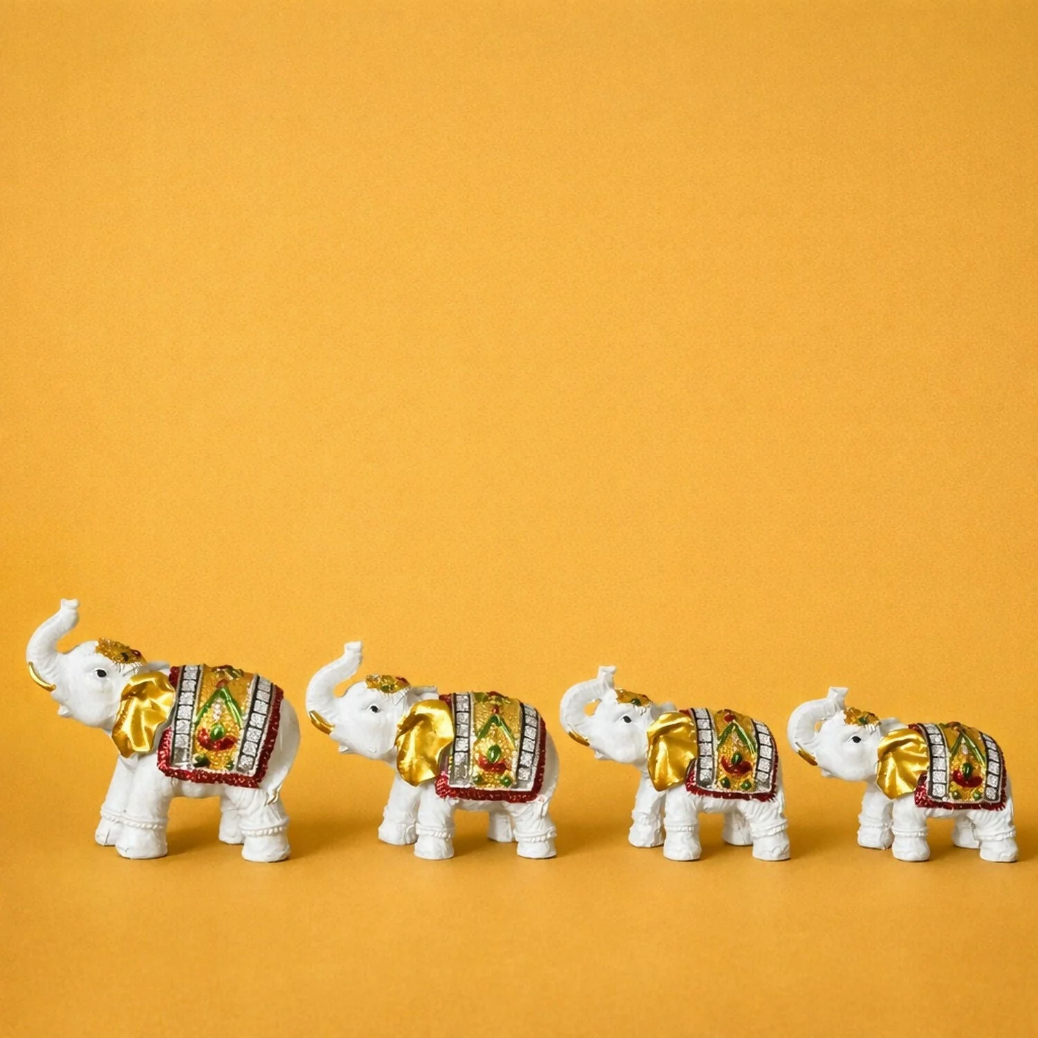 Add elegance and positive vibes to your space with this White Elephant Decorative Showpiece Set. Beautifully crafted with intricate detailing and highlighted with rich gold accents, these elephant figurines symbolize prosperity, protection, and good fortune.