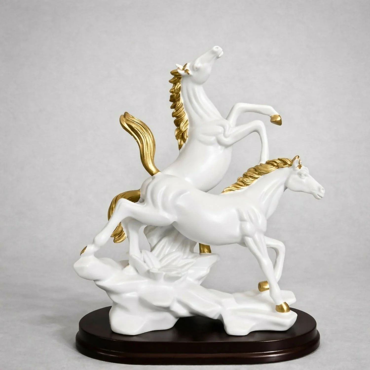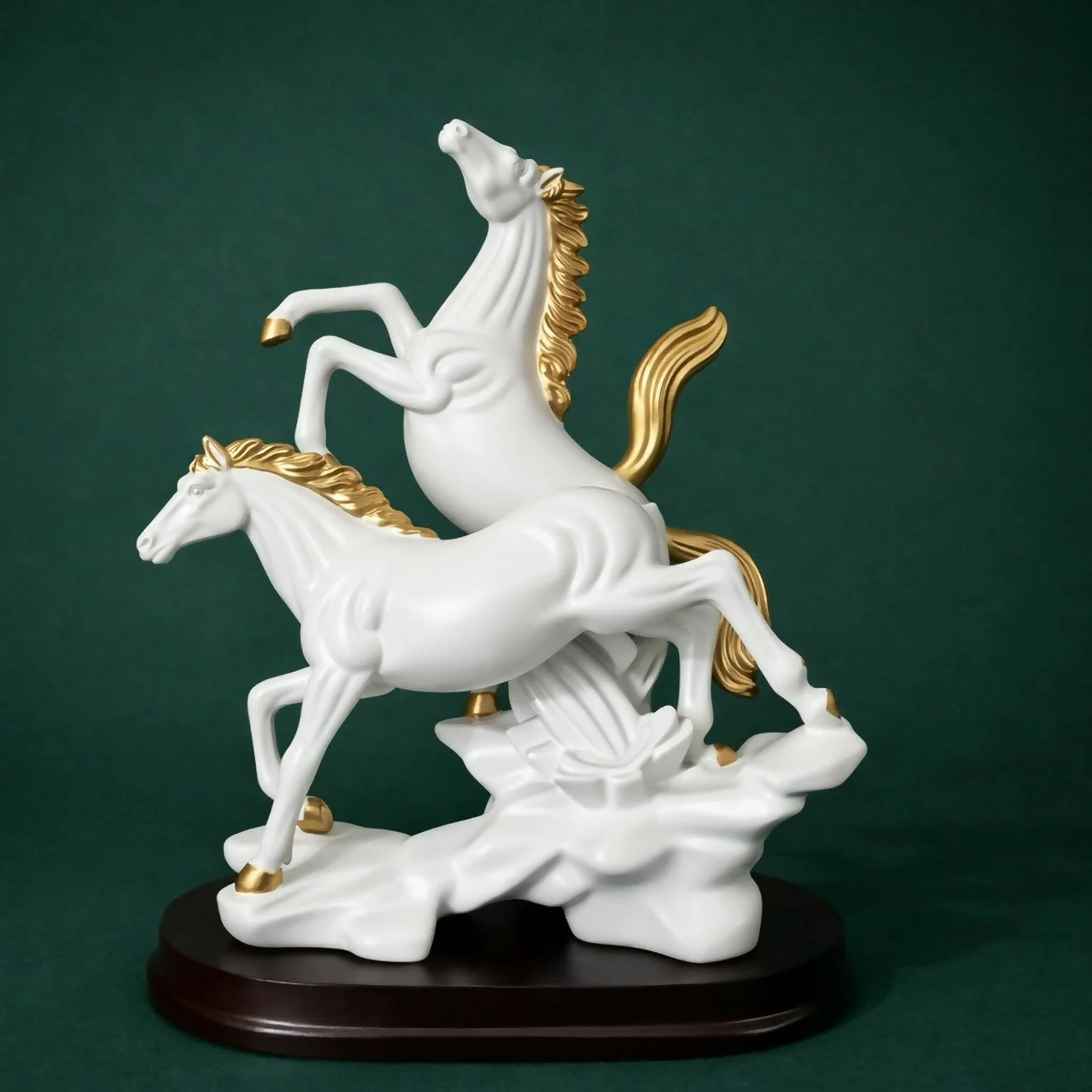 • Elegant dual horse design with premium white and gold finish