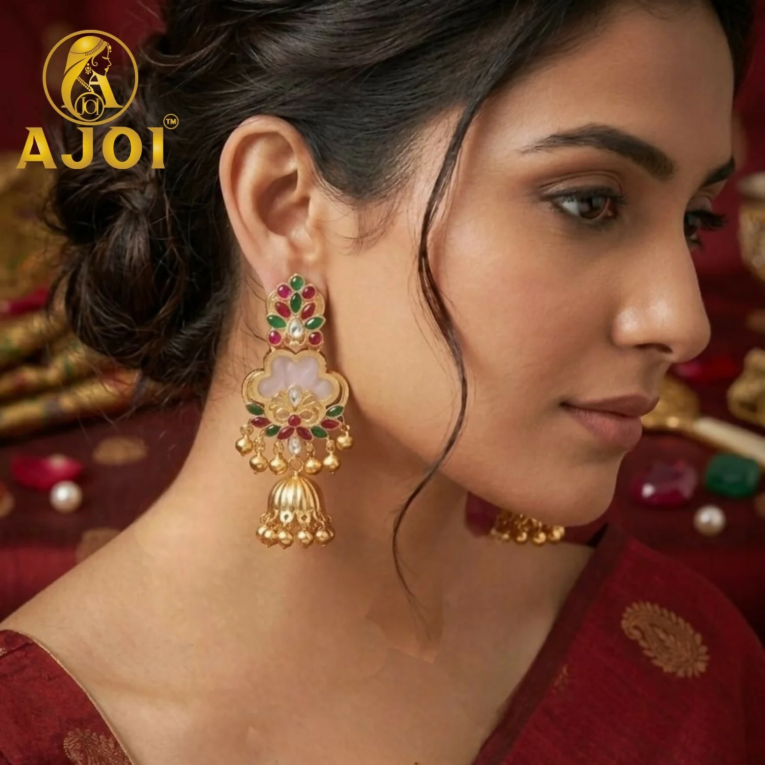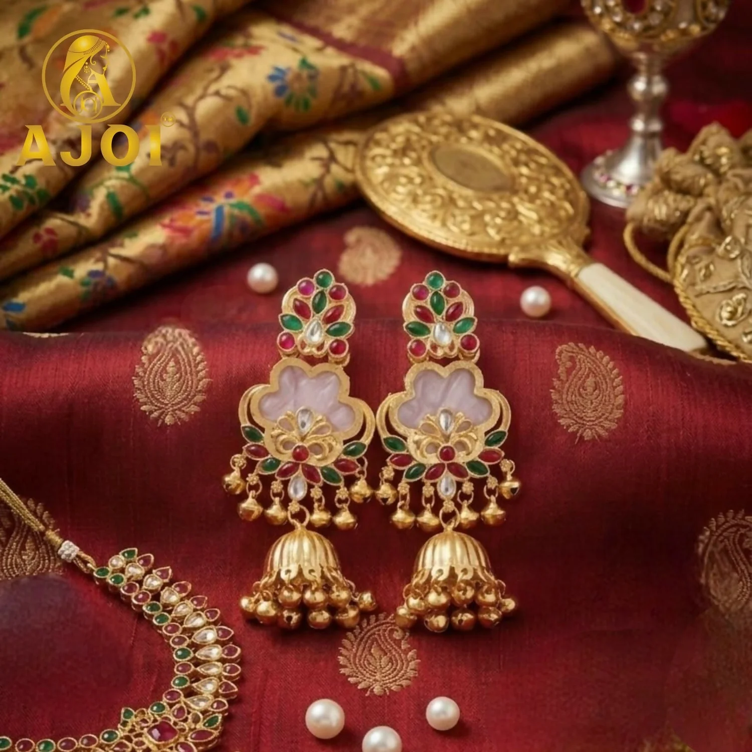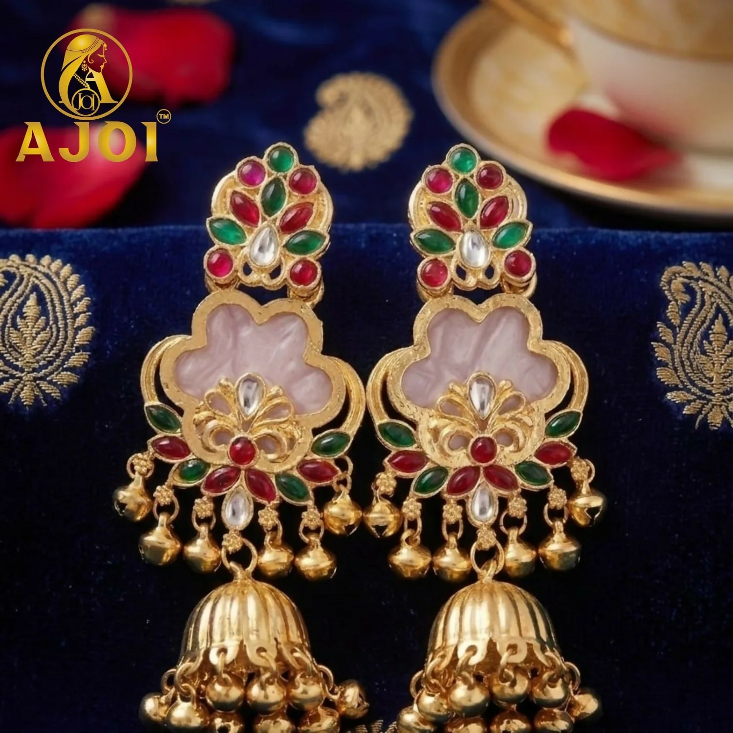 Be the first to review White Kundan Floral Jhumka Earrings with Stone Work Traditional Ethnic Design!