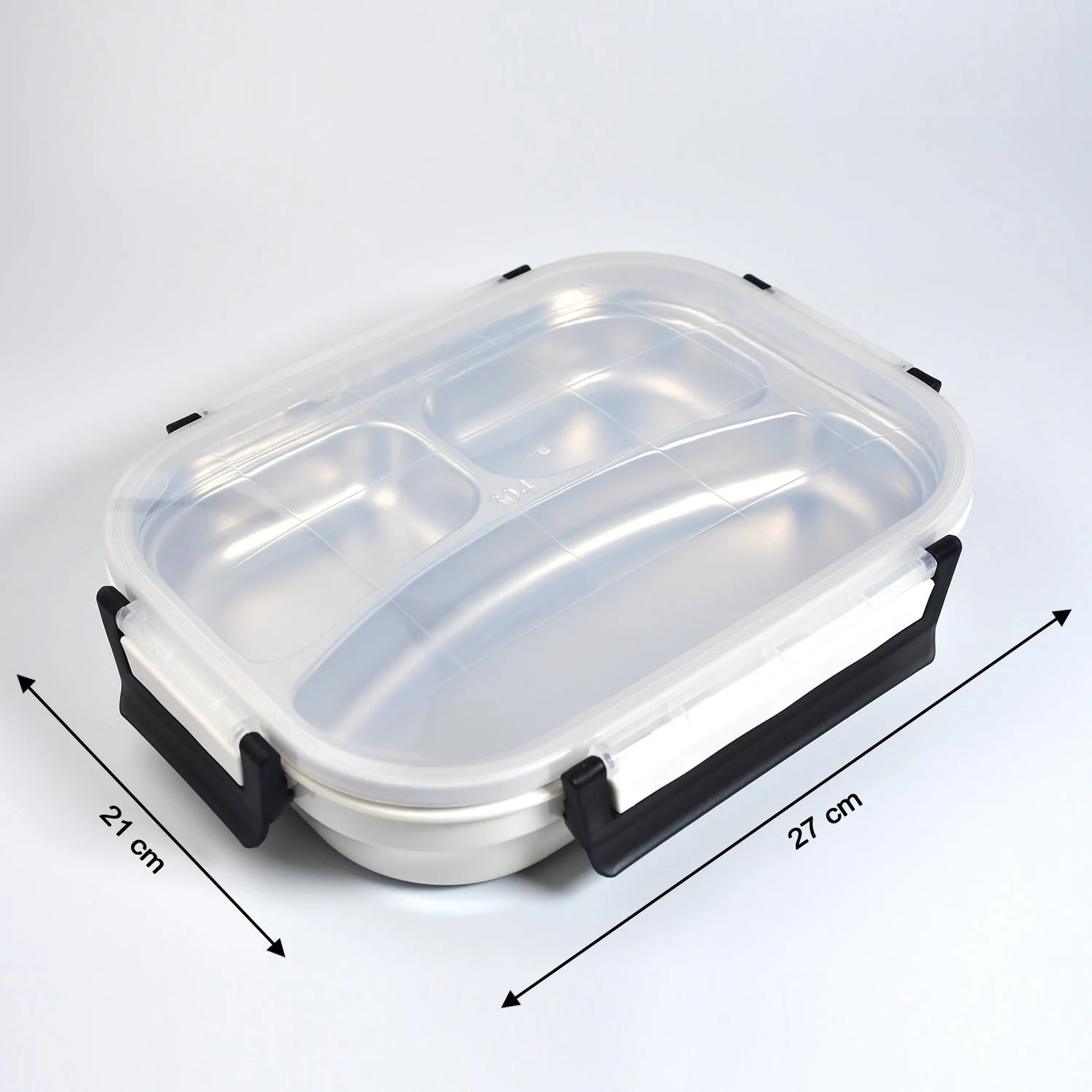 2980 White Transparent Lunch Box for Kids and adults, Stainless Steel Lunch Box with 3 Compartments.