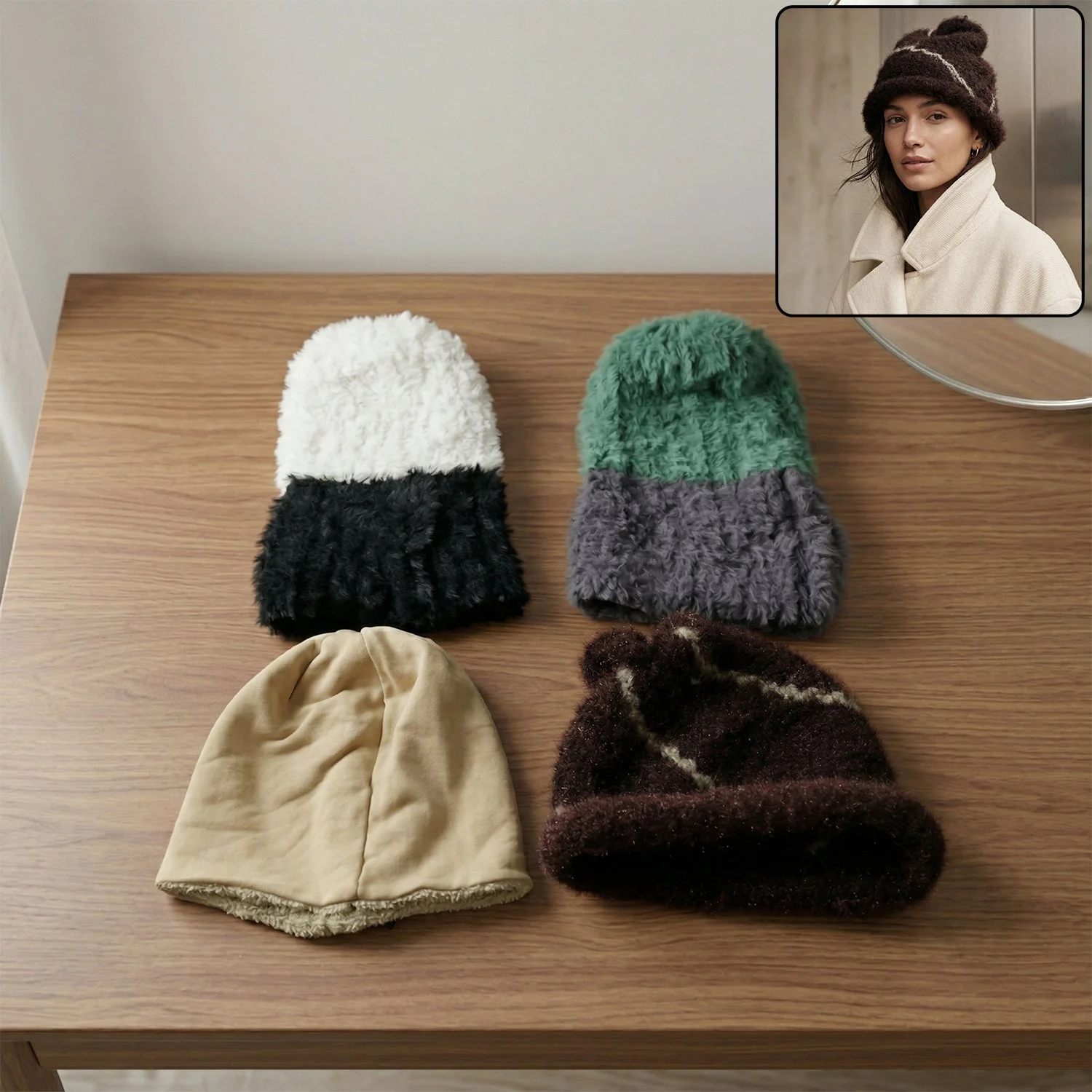 Winter Warm Woolen Beanie Cap for Men & Women 1 Pc – Soft Fleece Lined Stylish Knit Cap for Cold Weather Outdoor Wear with Comfortable Fit (Mix Design)