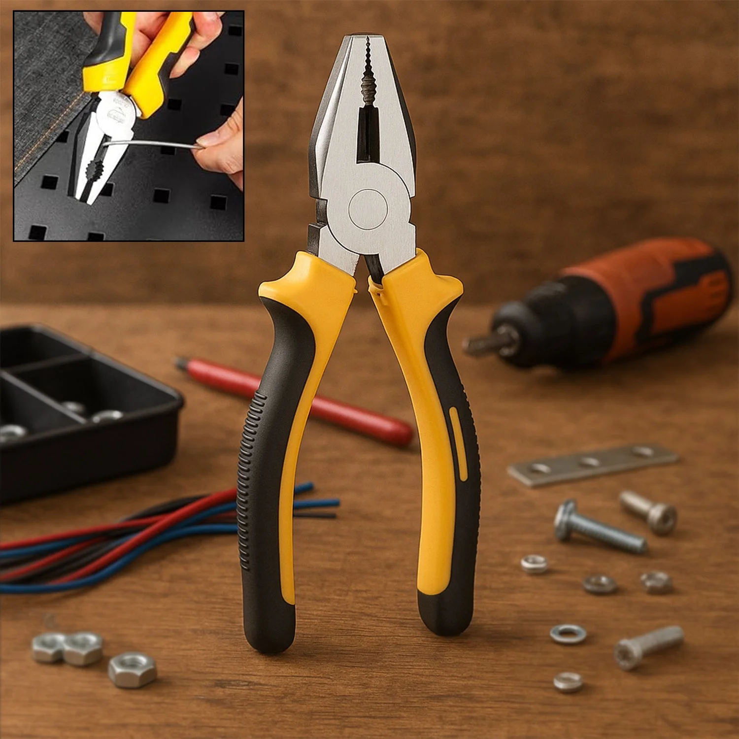 Tools brings to you an 8 inch combination plier which is made to last long. The anti-rust protection and rubber handle ensures this product lasts longer with no compromise in its performance. The grooves in the jaw of the plier provides better grip.