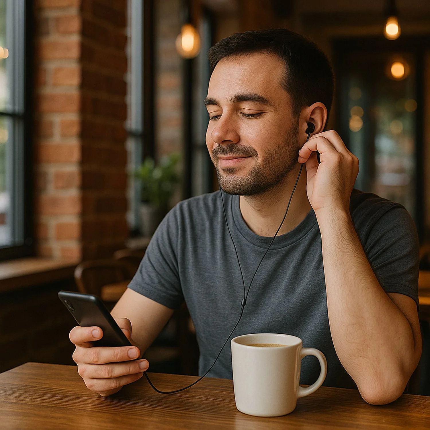 Soft silicone earbuds provide a comfortable, noise-isolating fit.