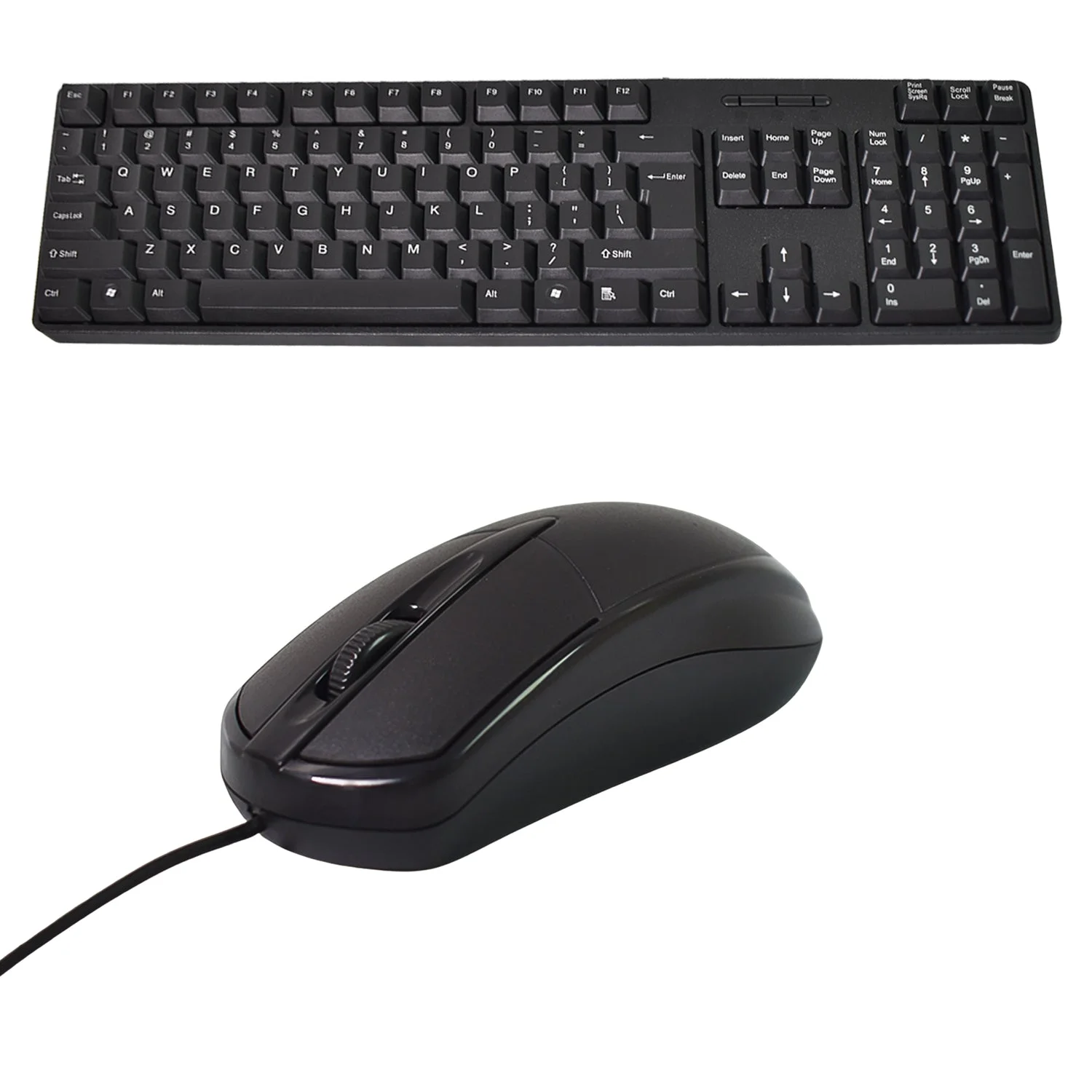 Wired USB Keyboard 107 Keys & Mouse Set, Ergonomic Portable Keyboard & Mouse for Home Office, Plug and Play (2 Pc Set)