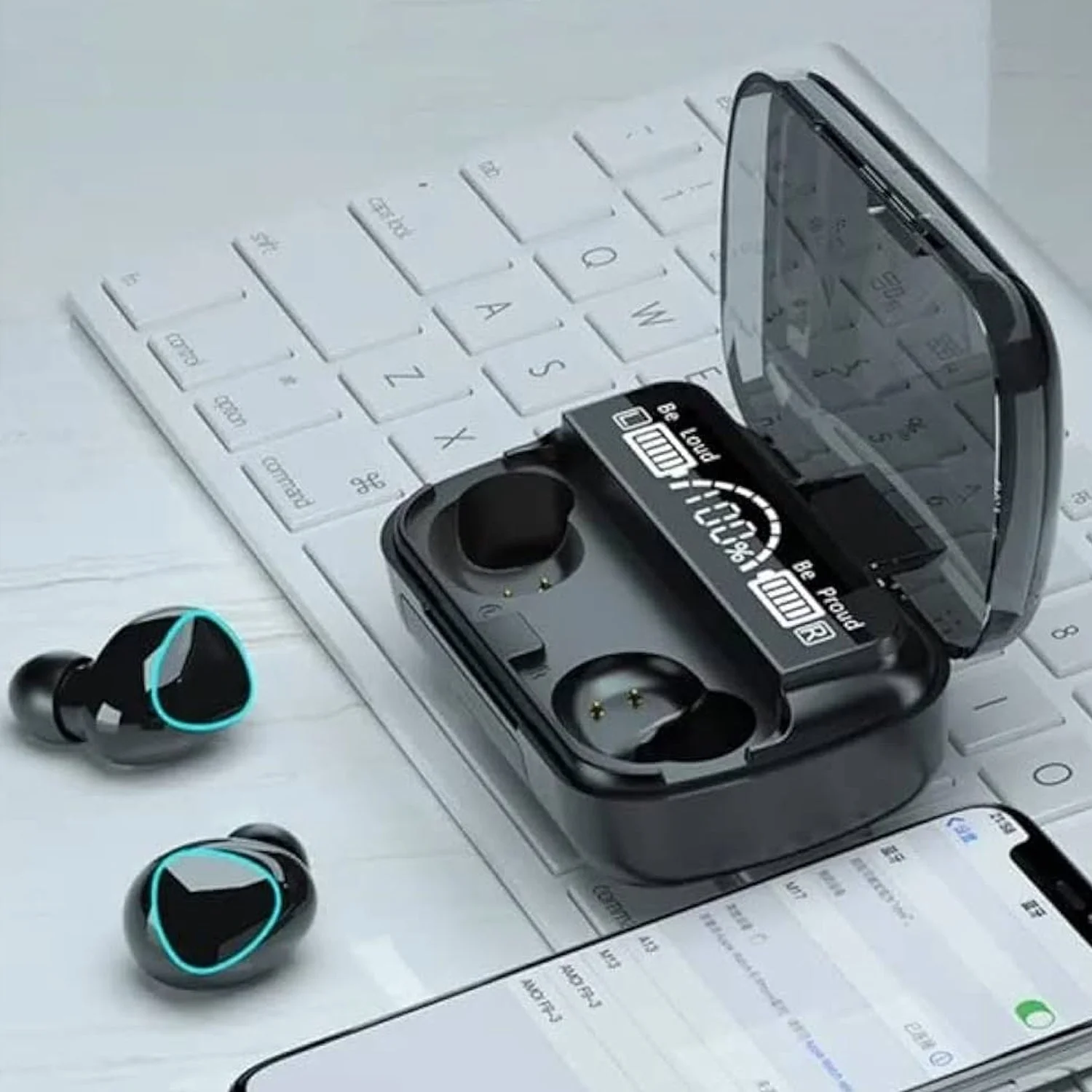 - Individual power display of earbuds and charging case - L/R Bluetooth earbuds battery separated LED display design. It will display how much battery remaining in the charging base when putting into the case, you can know when is the best time to charge.