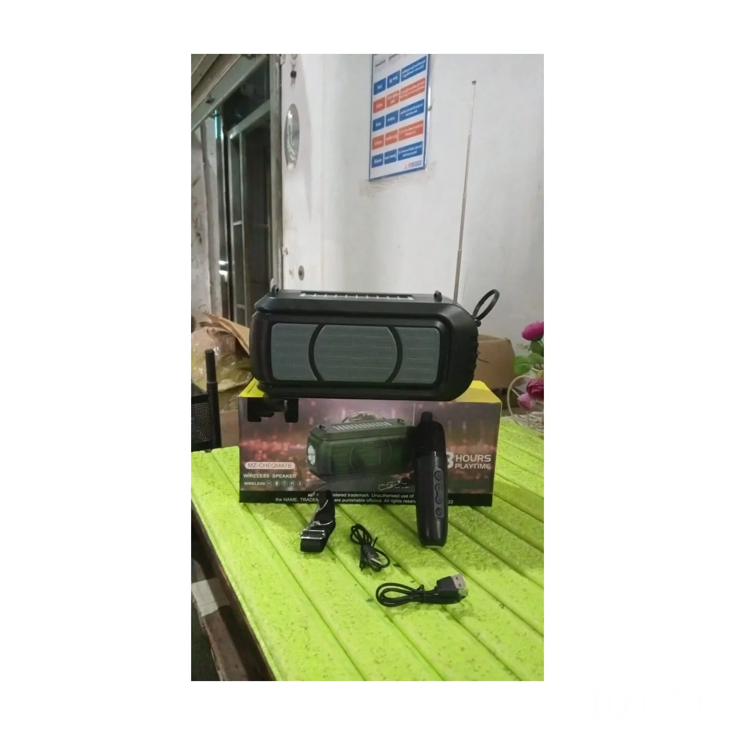 Wireless Bluetooth Speaker 5W High Bass with Wireless Mic / Microphone, LED Torch, Solar Charging, Support USB, TF Card & Adjustable Strap Line in Connectivity Instant Pairing, Portable Speaker for Travel (1 Set)