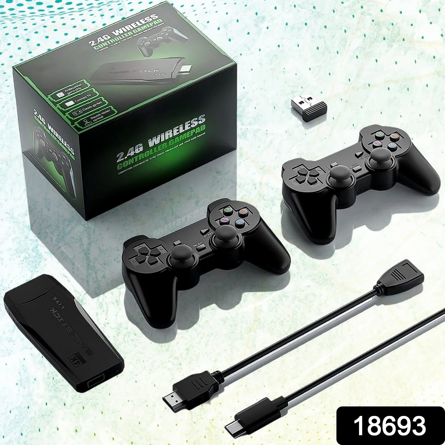 Wireless Controller Gamepad Gaming Console with 10,000+ Games, 4k Ultra HD Game Sticks Output, and 2.4GHz Wireless Controller Video Games for TV Plug and Play, Dual Player (1 Set / Battery not included)