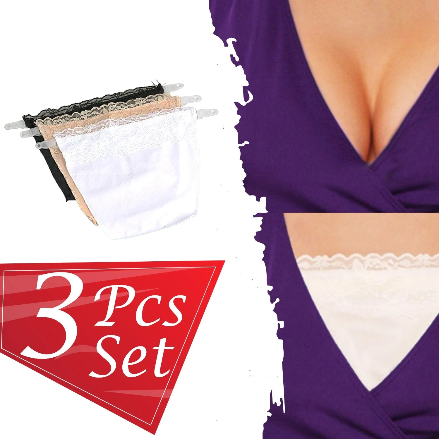 Package includes: 3 pieces clip-on camisoles