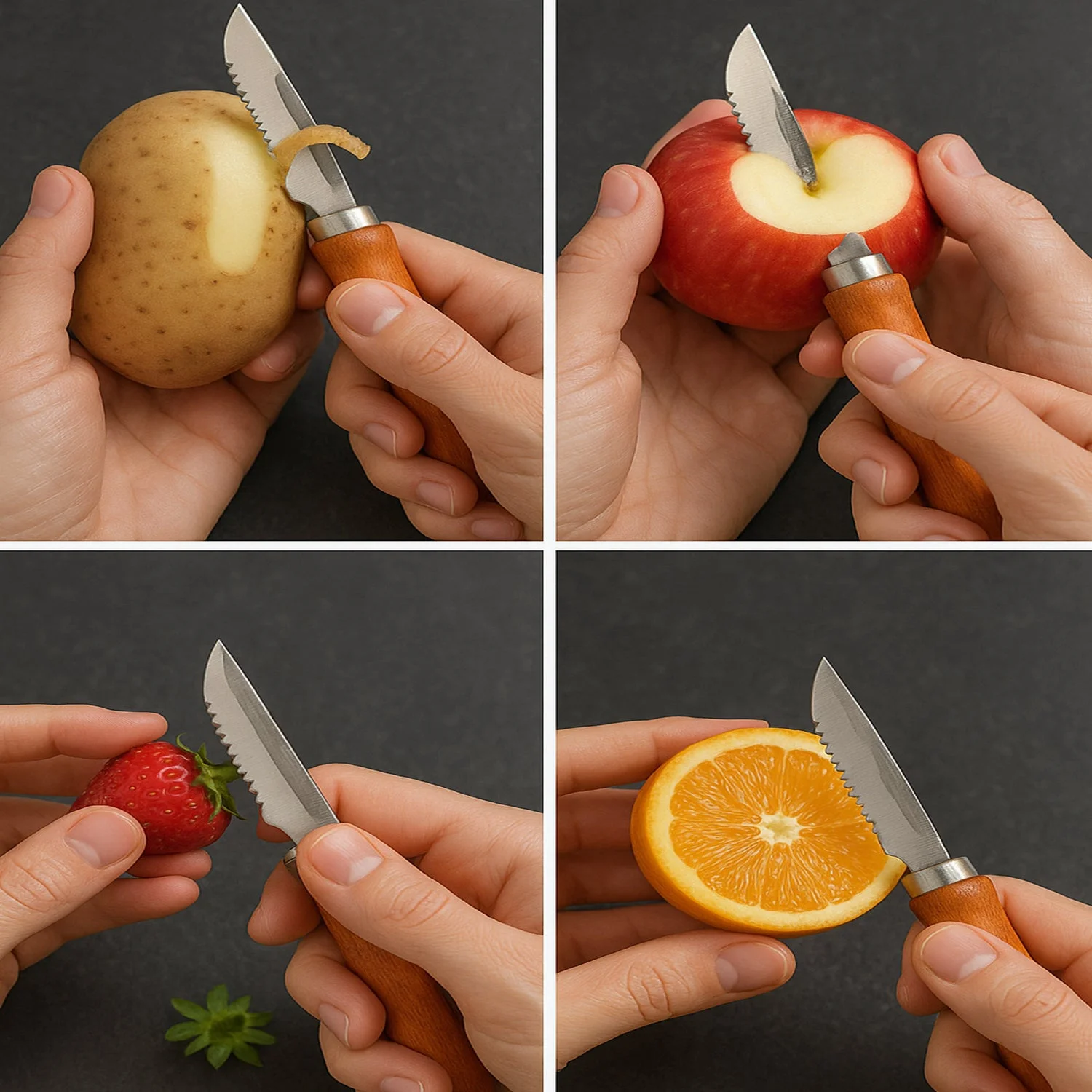 Multipurpose peeler with razor-sharp edge