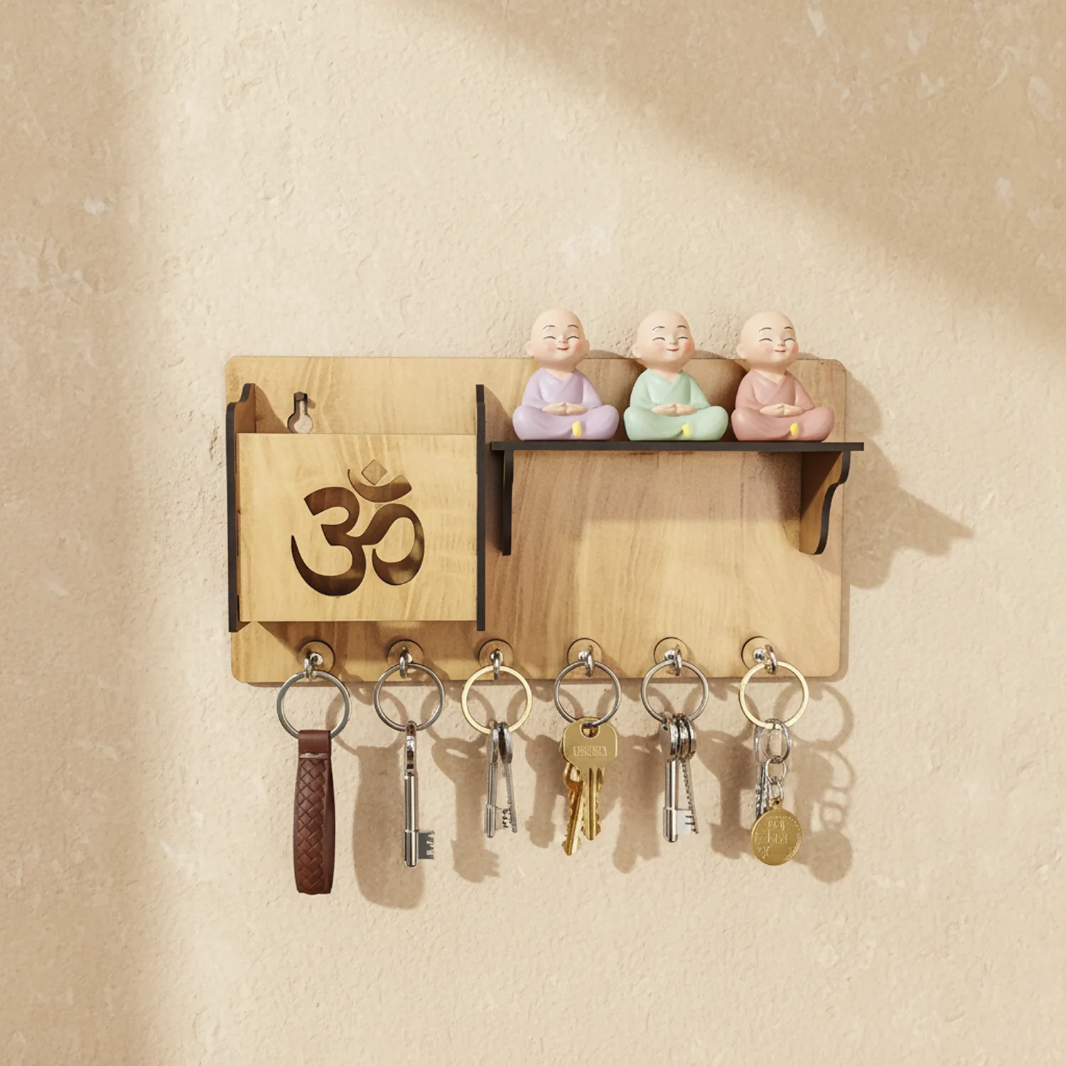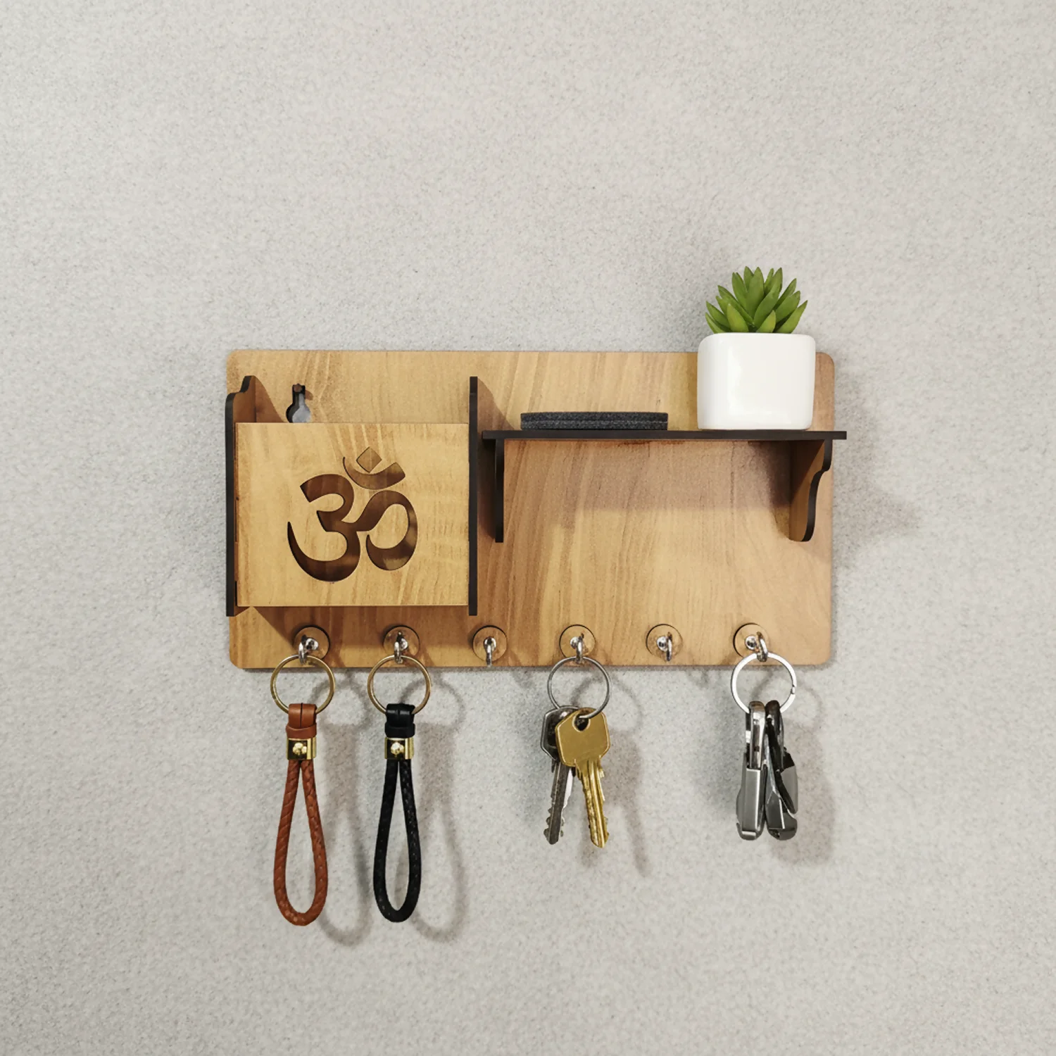Be the first to review Wooden Om Key Holder with Shelf & Mobile Stand | Spiritual Home Décor!