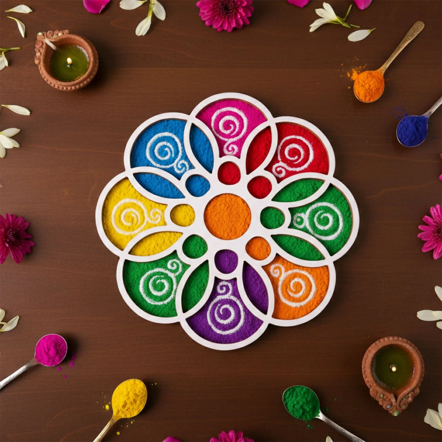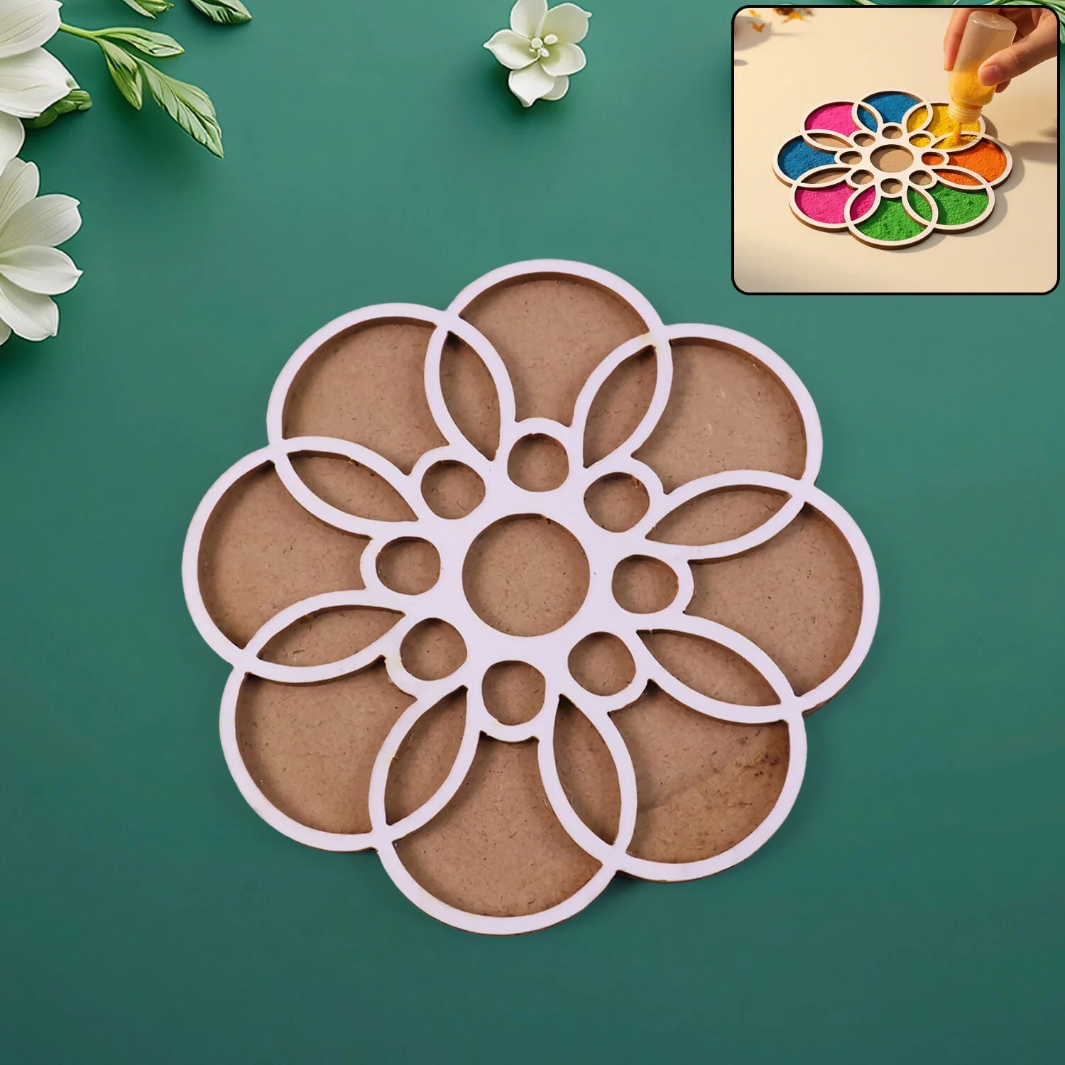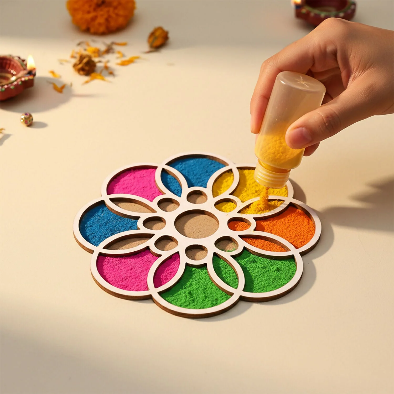 Simple to use, just place and fill rangoli powder