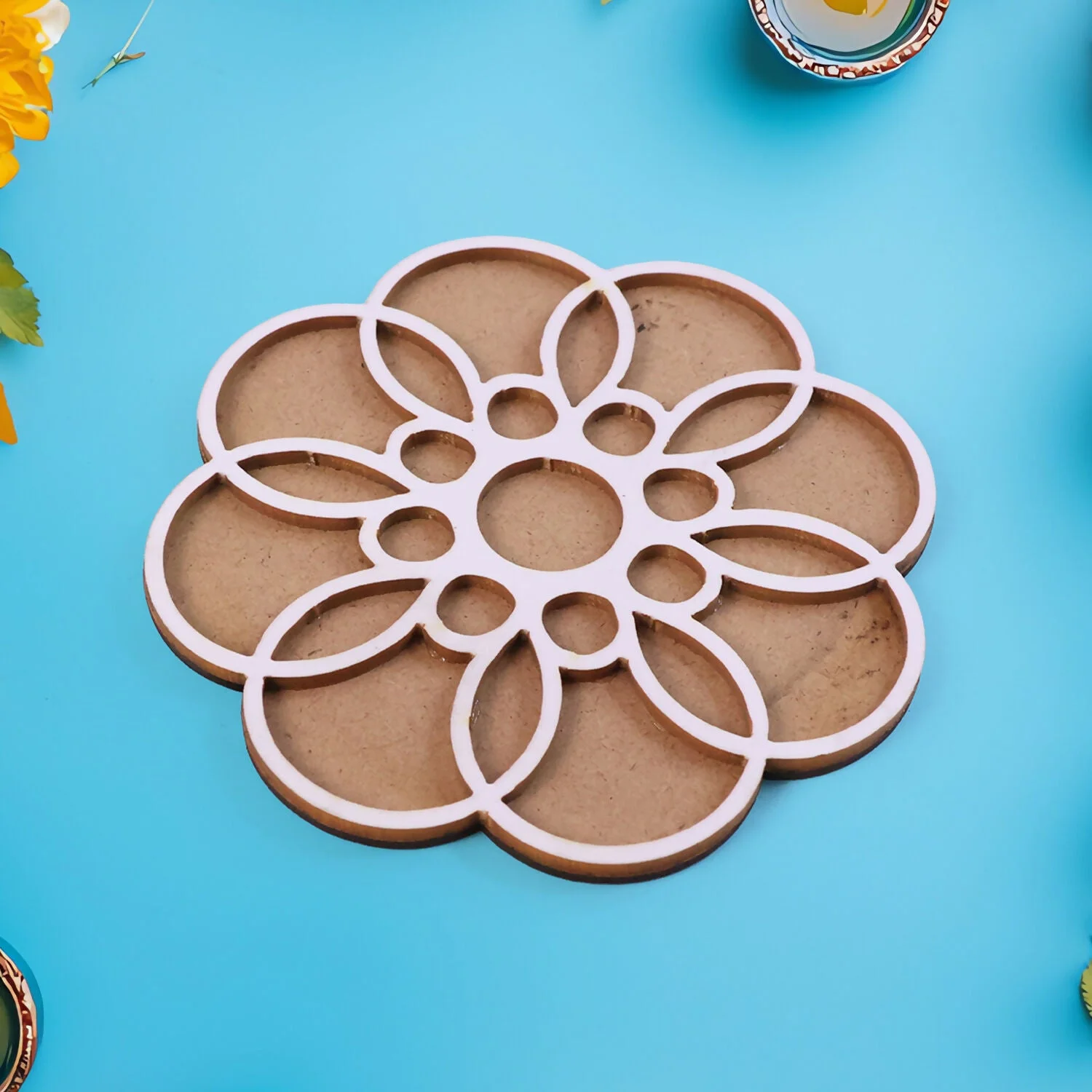 Be the first to review Wooden Rangoli Stencil | Round Petal Flower Design!