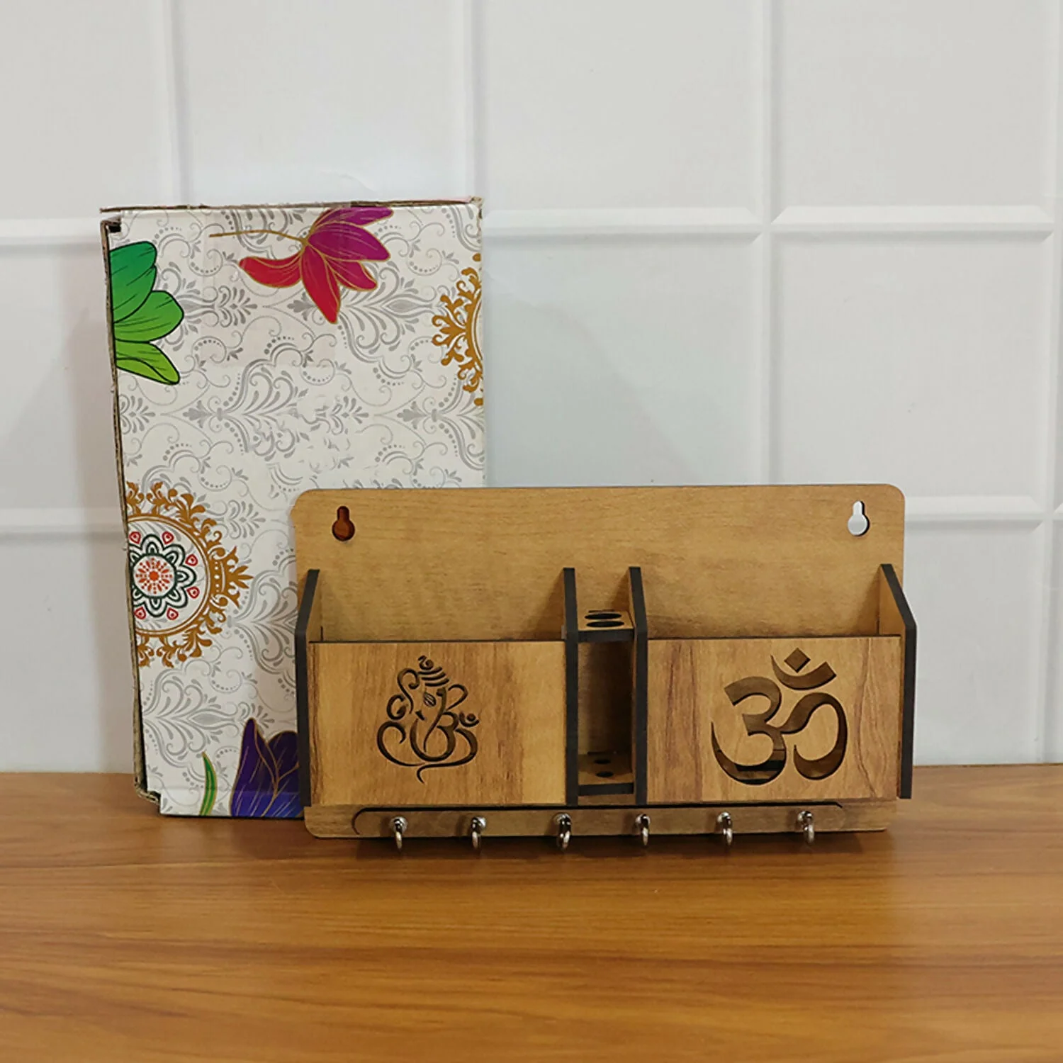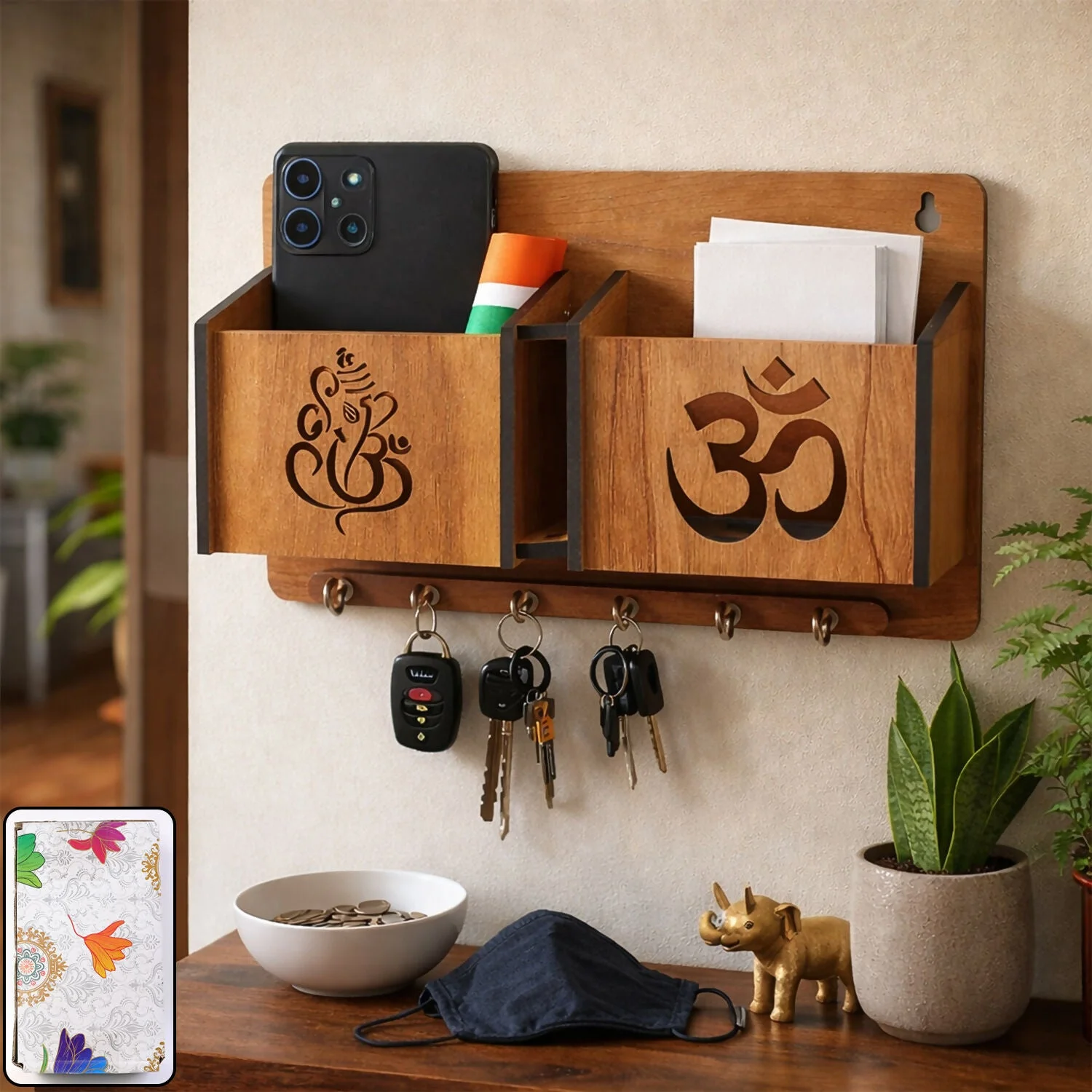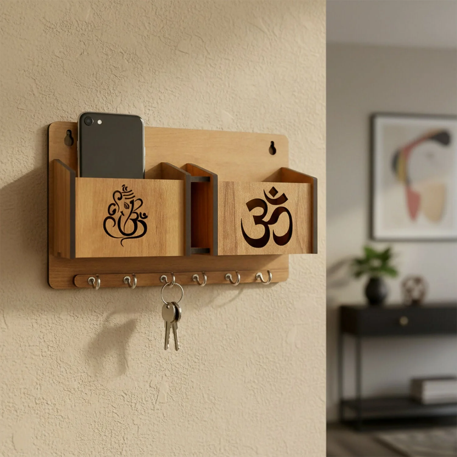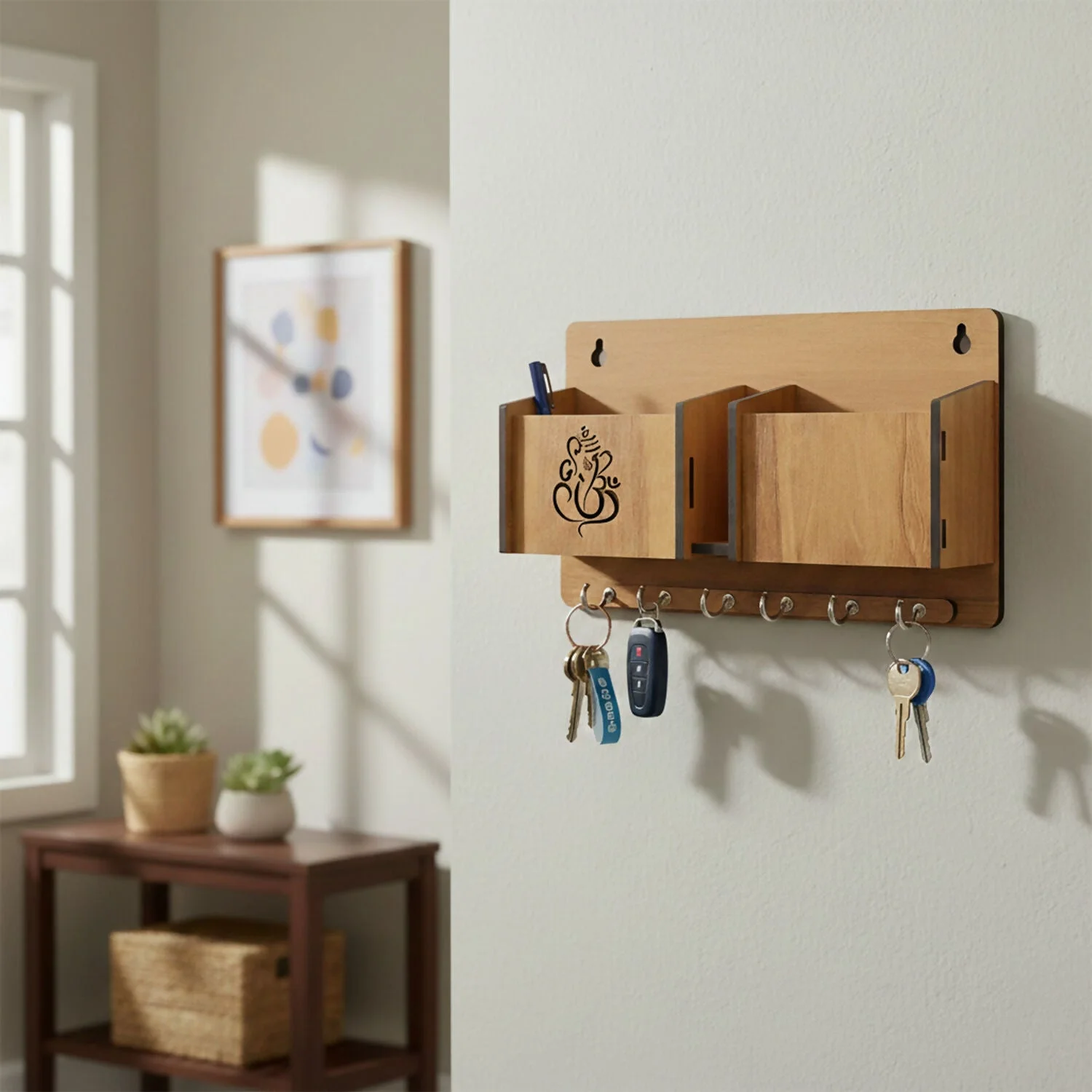 Keep your entryway clean, organized, and stylish with this premium wooden wall mounted key holder designed for modern homes. This multipurpose organizer comes with a smart shelf system that allows you to store mobile phones, wallets, remotes, visiting cards, and daily essentials in one place.