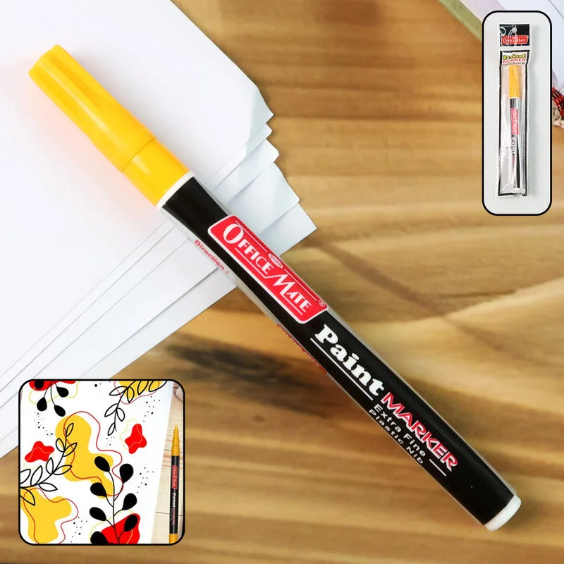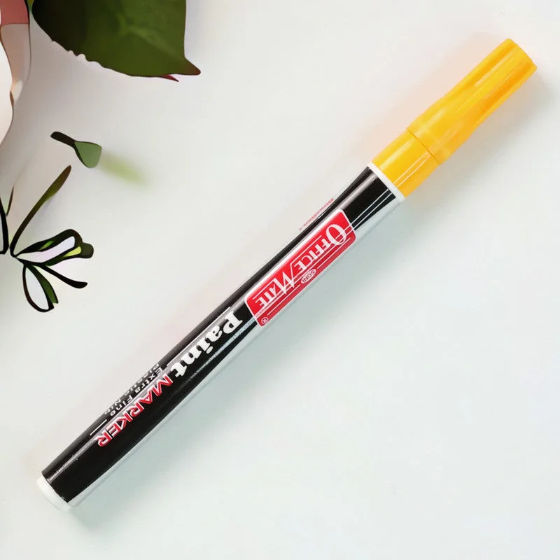 The Yellow Paint Marker Pen is perfect for bold, precise, and long-lasting writing on any surface. Its extra-fine nib ensures smooth, clean lines suitable for labeling, detailing, and creative design work. With quick-drying, waterproof, and fade-resistant ink, this marker is built to perform on metal, glass, plastic, ceramic, wood, and paper. Ideal for both professional and artistic applications, it delivers a bright yellow color that stands out with excellent coverage and durability.