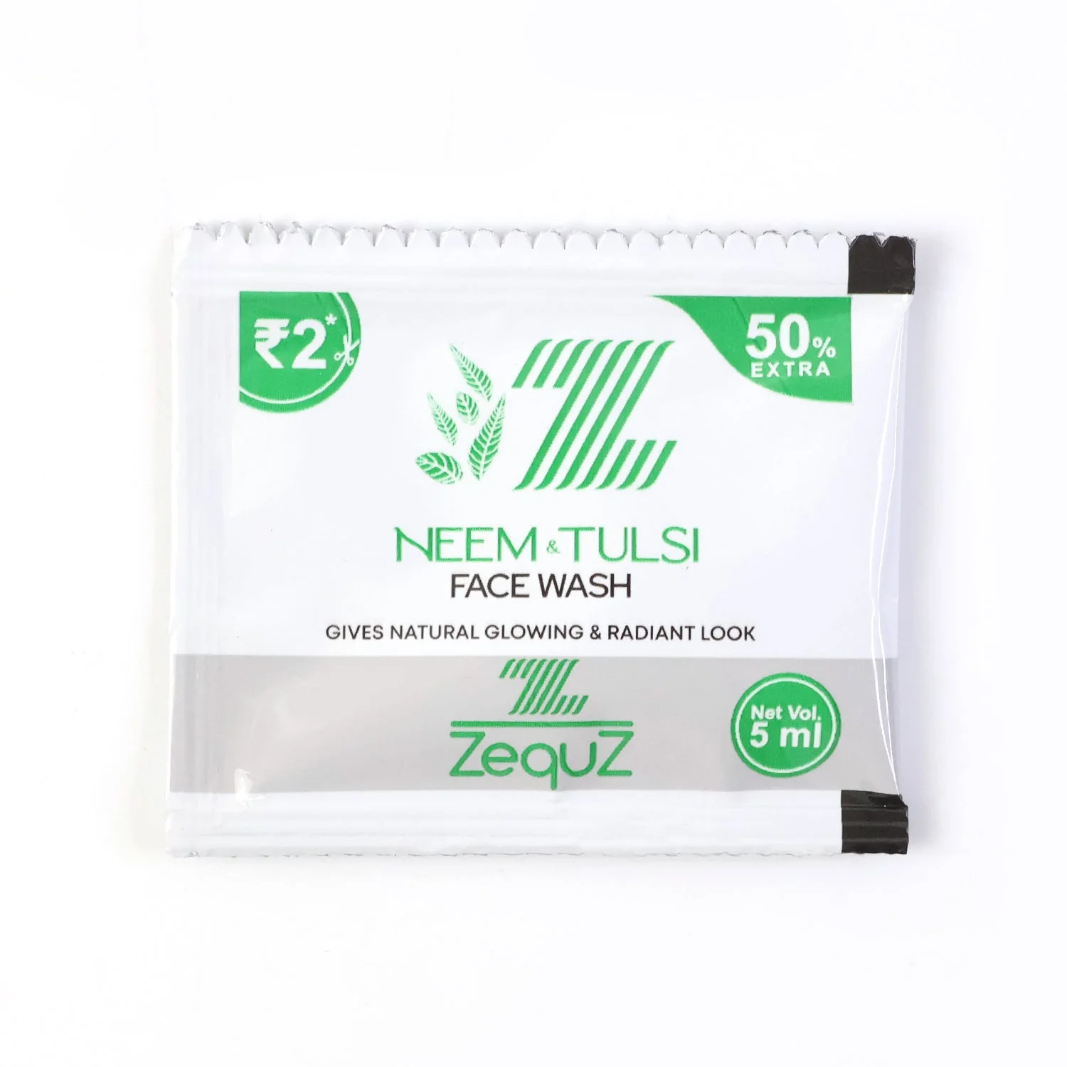 Zequz Neem & Tulsi Herbal Face Wash Sachet – Skin-Purifying Anti-Acne Cleanser with Natural Extracts for Fresh, Glowing & Radiant Skin (5 ml | 50% Extra)