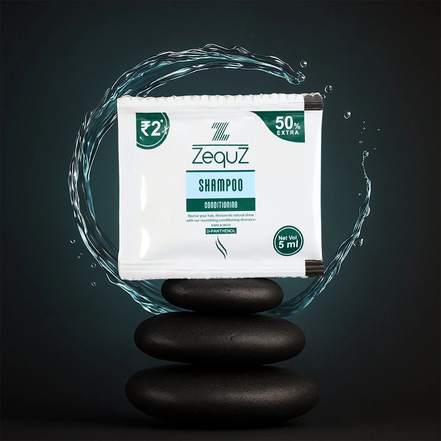 Zequz Nourishing Conditioning Shampoo 5 ml Sachet with Extra Shine Care, Gentle Cleansing & Smooth Finish for Soft Manageable Hair – Travel-Friendly Single-Use Pack