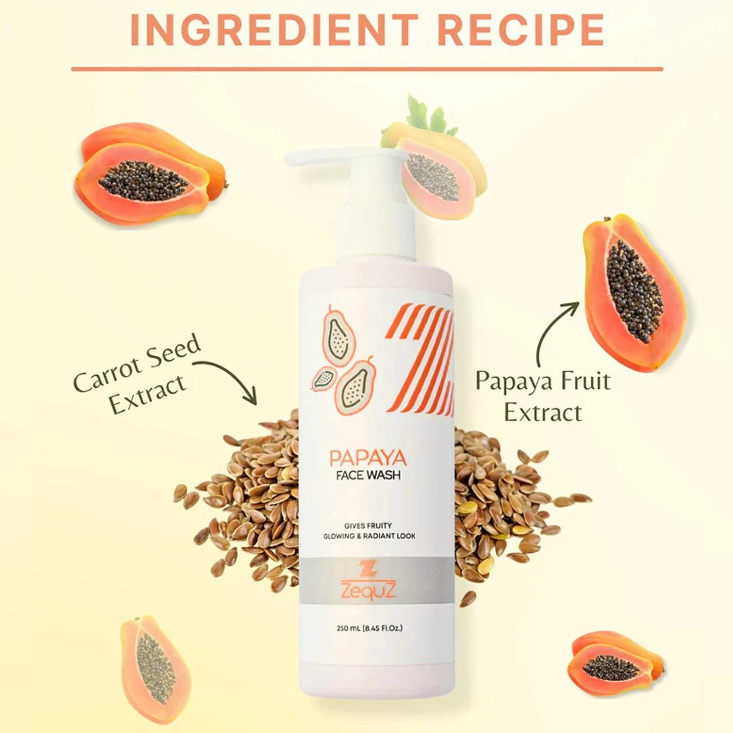 Zequz Papaya Face Wash – Gentle Daily Cleanser with Papaya Fruit Enzyme for Fresh, Smooth & Radiant-Looking Skin – 250 ml